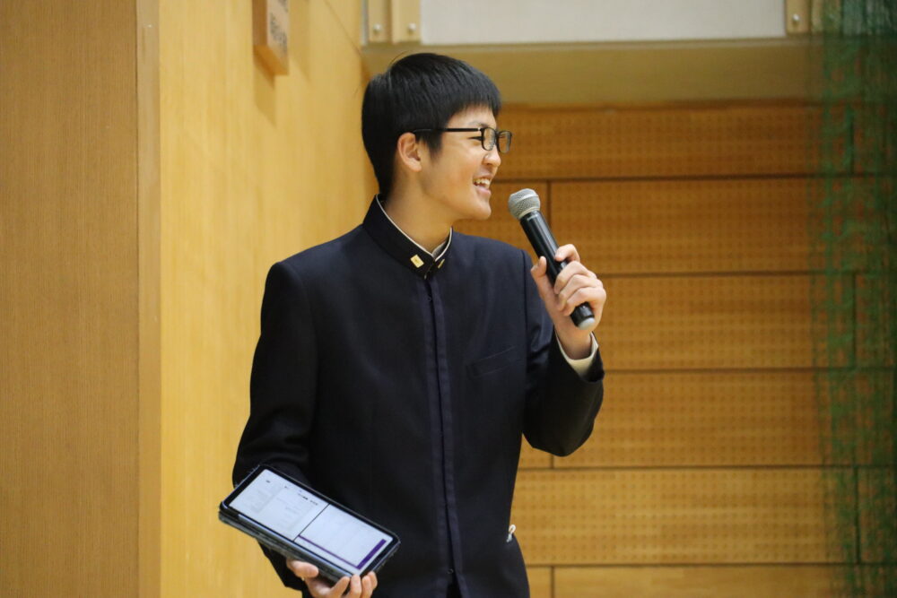 今までの学習コンテストより学校全体が積極的に問題を解こうとしてくれて、学校全体の学習に対する意欲が上がっただけで無く、団やチームの絆も深まったのではないかと思います。クイズ研究会初めての大仕事でしたが、楽しく解説・司会をすることができました。参加者の皆さんと先生方に感謝しかありません。