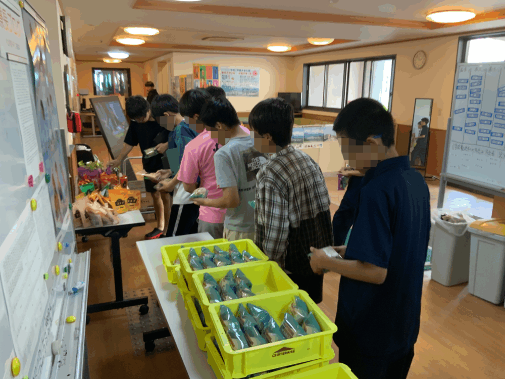 お楽しみのおやつタイムは、片山副理事長からの差し入れと寮からのおやつで2種類食べることができ寮生たちのやる気もアップです!