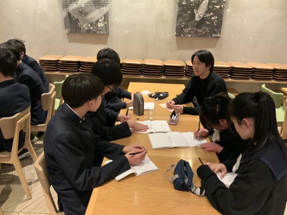 夕食後は,主に東京の大学に進学した卒業生(15期生)を交えての座談会を行いました。現役の大学生から大学生活のようすや自らの中学高校時代の勉強の仕方などを直接聞くことができ,有意義な時間になりました。