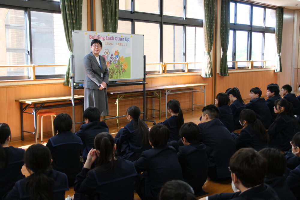 学年集会では、学年の先生の紹介や「1年間どのように歩むのか」についての話がありました。